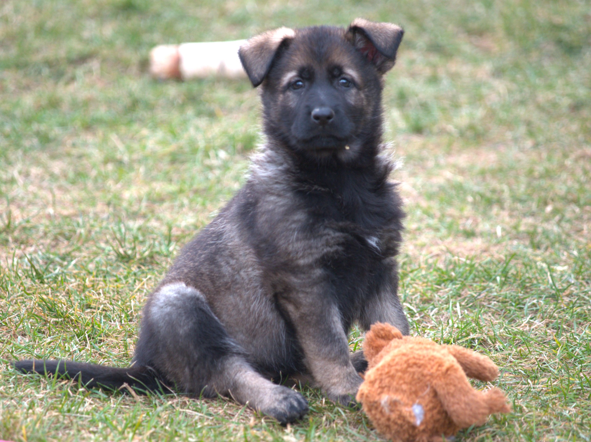Volná krátkosrstá vlkošedá a celočerná fenka